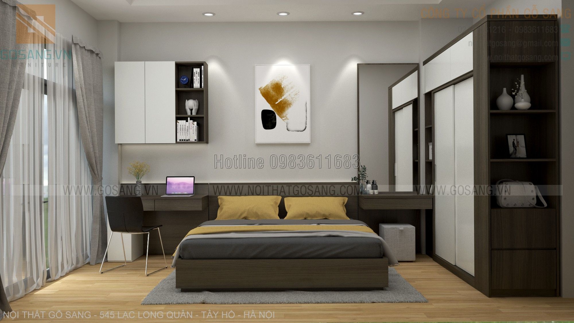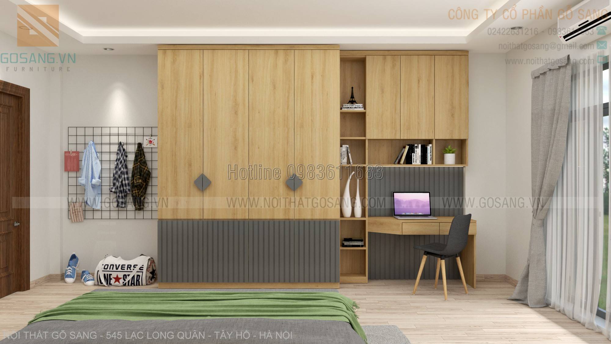Chất liệu gỗ MDF nhập khẩu, bề mặt phủ Melamine cao cấp Malaysia chống xước 1. Gói thầu chính Thiết kế phối cảnh 3D Thi...