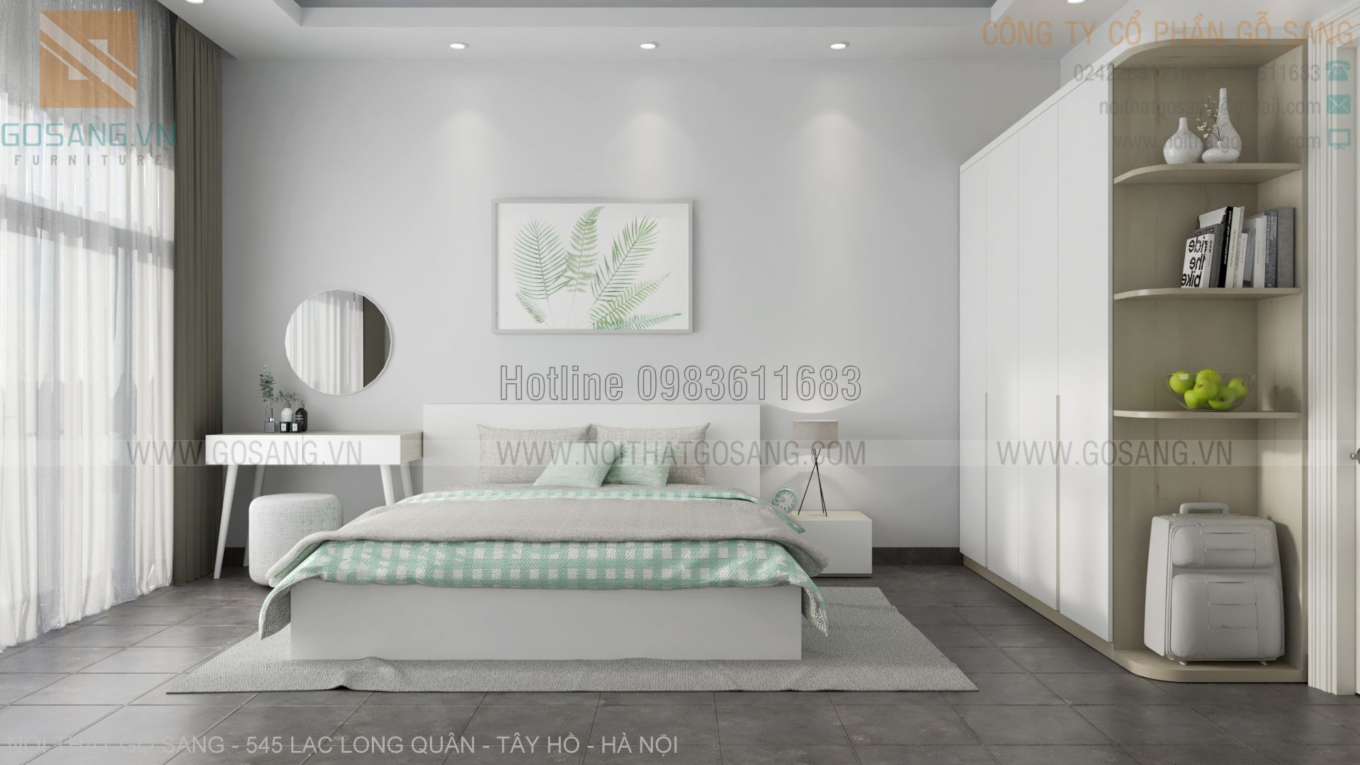 Chất liệu gỗ MDF cốt xanh chống ẩm, bề mặt phủ Melamine cao cấp nhập khẩu 1. Gói thầu chính Thiết kế phối cảnh 3D...